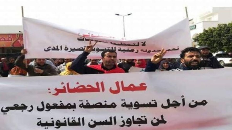 وصرح المتحدث باسم المشاركين منير النعيمي بأن حوالي 18 ألف شخص من عمال الحضار البالغين ما بين 45 و55 سنة معنيون بمطالب الترسيم وهم يعانون أوضاعا اجتماعية صعبة.