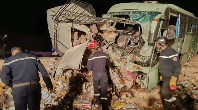وحسب الحصيلة الأولية، فإن الحادث قد تسبب في وفاة 5 أشخاص على عين المكان، فيما لفظت الضحية السادسة أنفاسها الأخيرة بعد الحادث بقليل، إضافة إلى إصابة 14 آخرين بجروح منهم 3 في حالة خطرة.