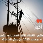 Next Article صفاقس: انقطاع التيار الكهربائي الخميس 4 ديسمبر 2025 عن بعض المناطق