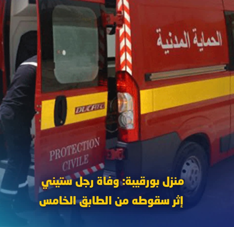 شهدت مدينة منزل بورقيبة اليوم حادثة أليمة تمثّلت في سقوط رجل ستيني من الطابق الخامس لإحدى العمارات بشارع الهادي شاكر، ما أدى إلى وفاته على عين المكان.وقد تنقّلت وحدات الأمن والحماية المدنية والسلطات المحلية إلى موقع الحادث، فيما أذنت النيابة العمومية بنقل الجثة إلى المستشفى الجامعي الحبيب بوقطفة ببنزرت للتشريح وتحديد الأسباب الحقيقية للوفاة. كما تم فتح بحث أمني للكشف عن ملابسات الحادث وما إذا كان سقوطاً عرضياً أو محاولة انتحار أو وجود شبهة جريمة.ويُذكر أن الهالك متقاعد من الجيش الوطني ومتزوج وأب لأبناء.