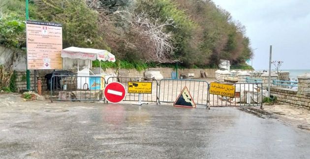 و تفاديا لأيّ مخاطر على المواطنين تمّ غلق الطريق السياحية الإبر من جهة المدينة و من جهة مسرح البحر ضمانا لسلامة المارة و تجنّبا لأيّ حادث قد يطرئ في ظلّ الوضع الجوي الحالي.