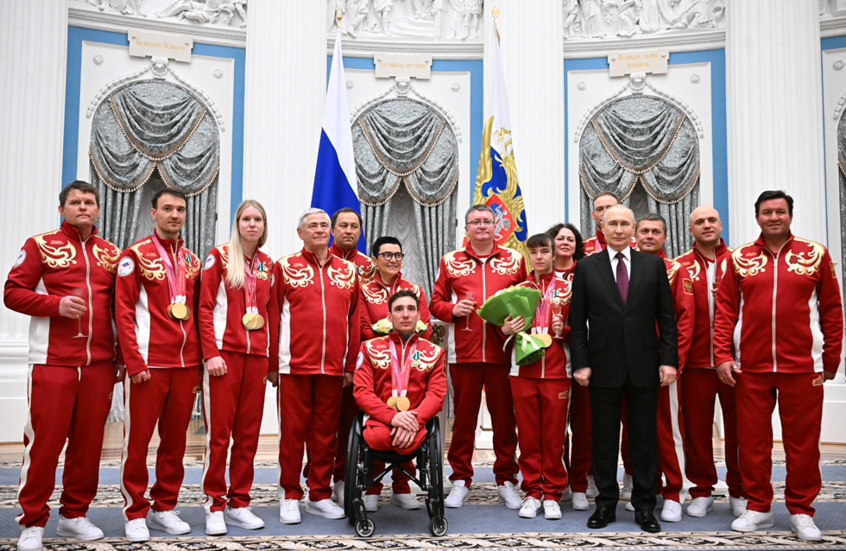 وقال بوتين في كلمة له خلال حفل تقديم أوسمة الدولة لأعضاء الفريق البارالمبي الروسي: “يسعدني من صميم قلبي أن أهنئكم يا فريقنا الوطني الروسي على هذا الأداء الرائع”، مؤكدا أن العلم والنشيد الروسيين عادا بشكل مظفر إلى الساحة الرياضية الدولية بفضل إنجازات الرياضيين البارالمبيين.