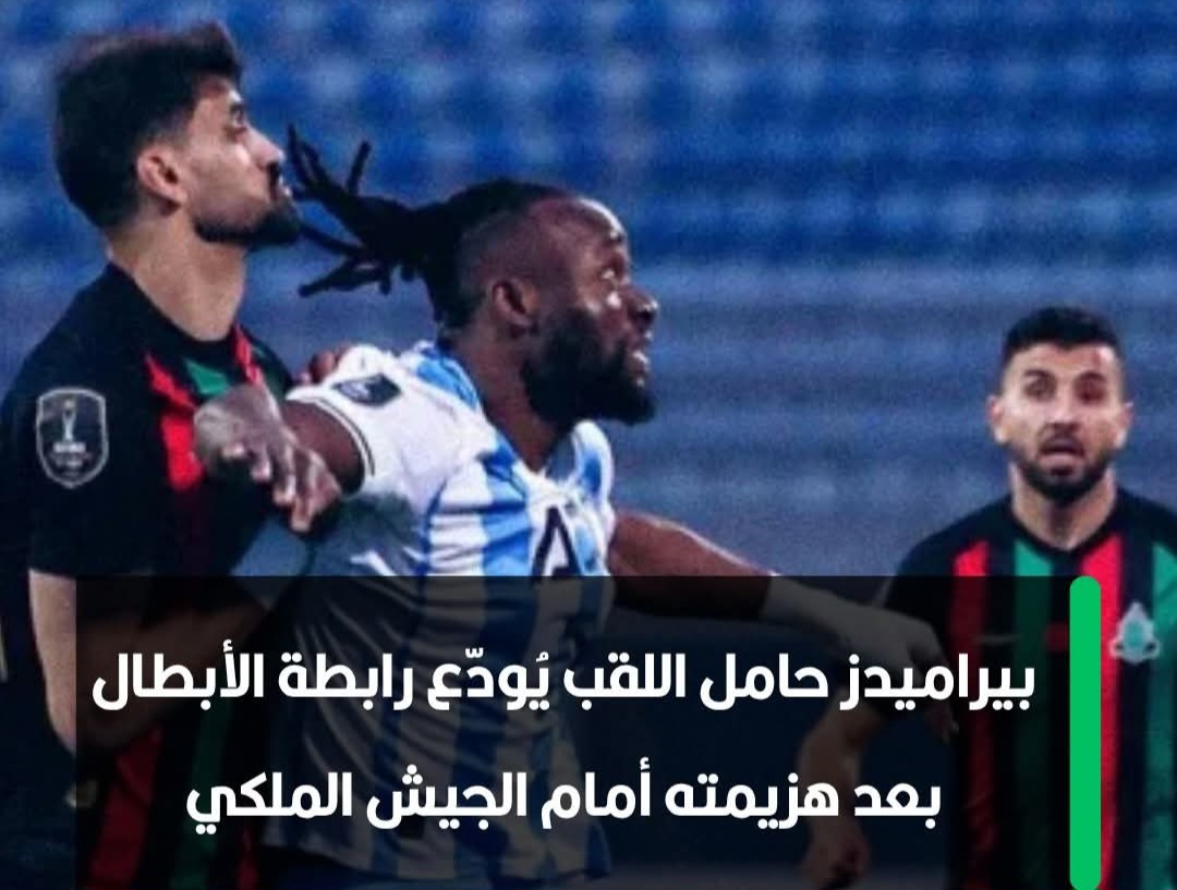 ودع ‌بيراميدز المصري ‌حامل ‌لقب دوري أبطال أفريقيا ⁠لكرة القدم مُنافسات البطولة، السبت، ​بخسارته (2-1) أمام ⁠ضيفه الجيش الملكي إيابا، ليخسر 3-2 ⁠في مجموع مباراتي دور الثمانية.