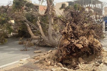 الرياح القوية تتسبب في سقوط أشجار