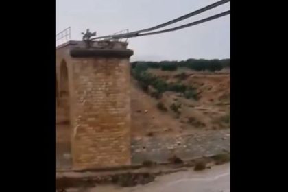 انهيار جزء من جسر اثر هطول أمطار غزيرة وسقوط حجر البرد