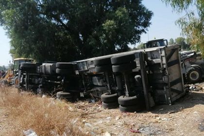 وفاة 3 أشخاص وإصابة 4 آخرين في حادث انقلاب شاحنة ثقيلة