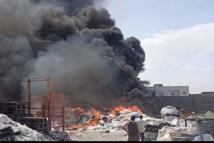 المنستير : إندلاع حريق في مصنع لجمع النفايات ببوحجر